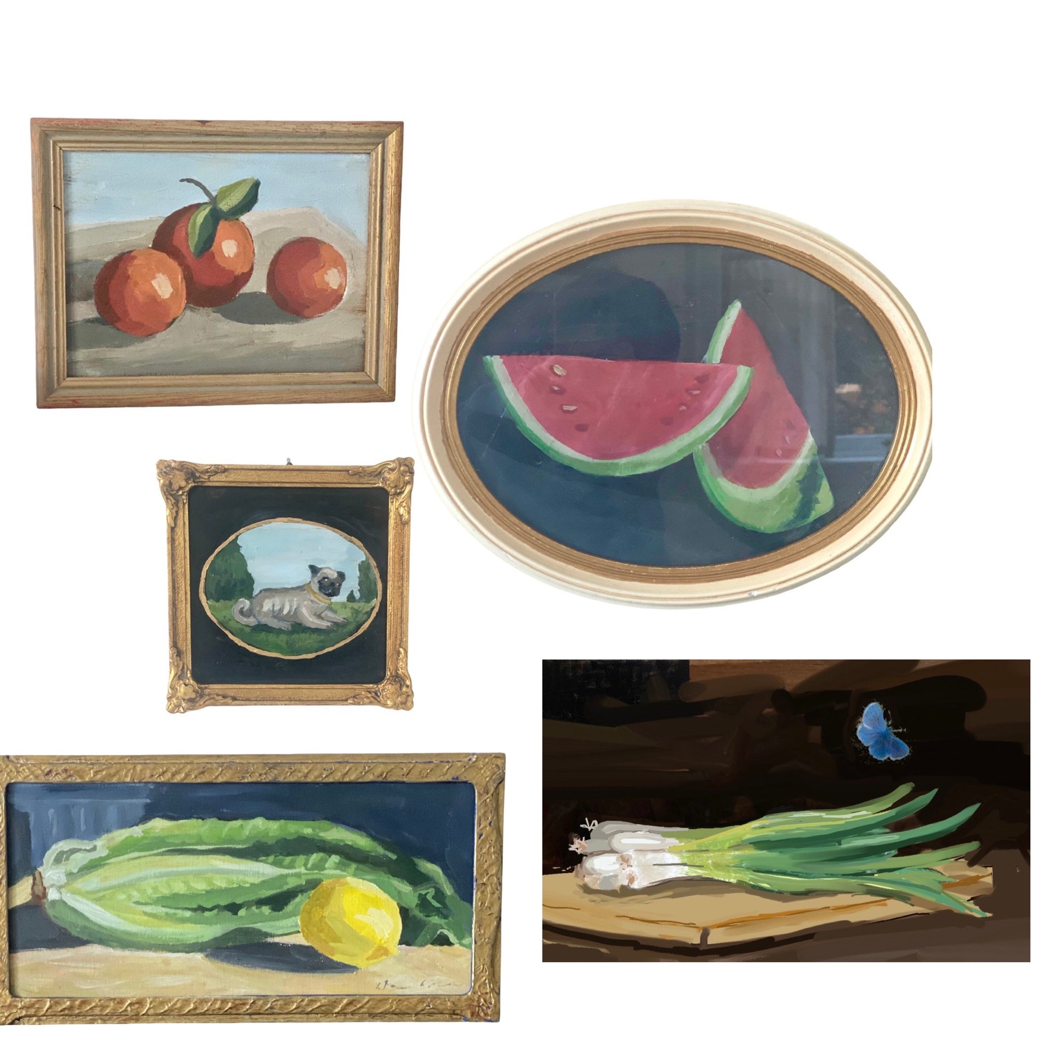 Framed artwork measures 6” by 6”. One of a kind. Easy to hang